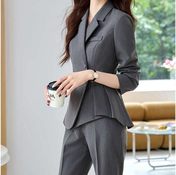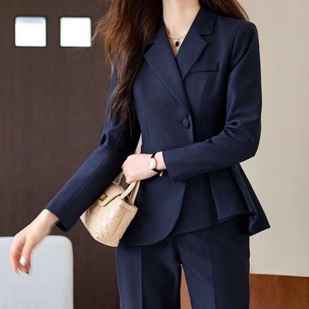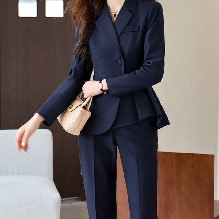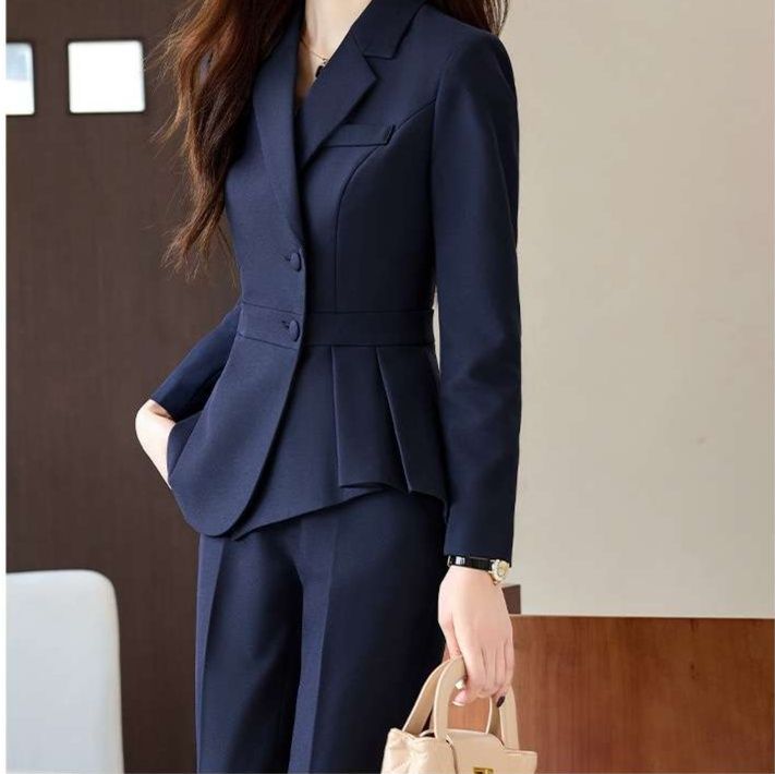 洗練された襟元のラインと適度なフィット感で、オフィスシーンでも上品な雰囲気を演出