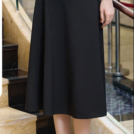 フレアシルエットのスカートは適度な丈感で、動きやすさと格式を両立しました。