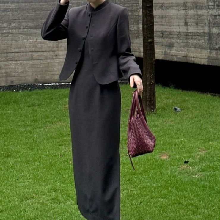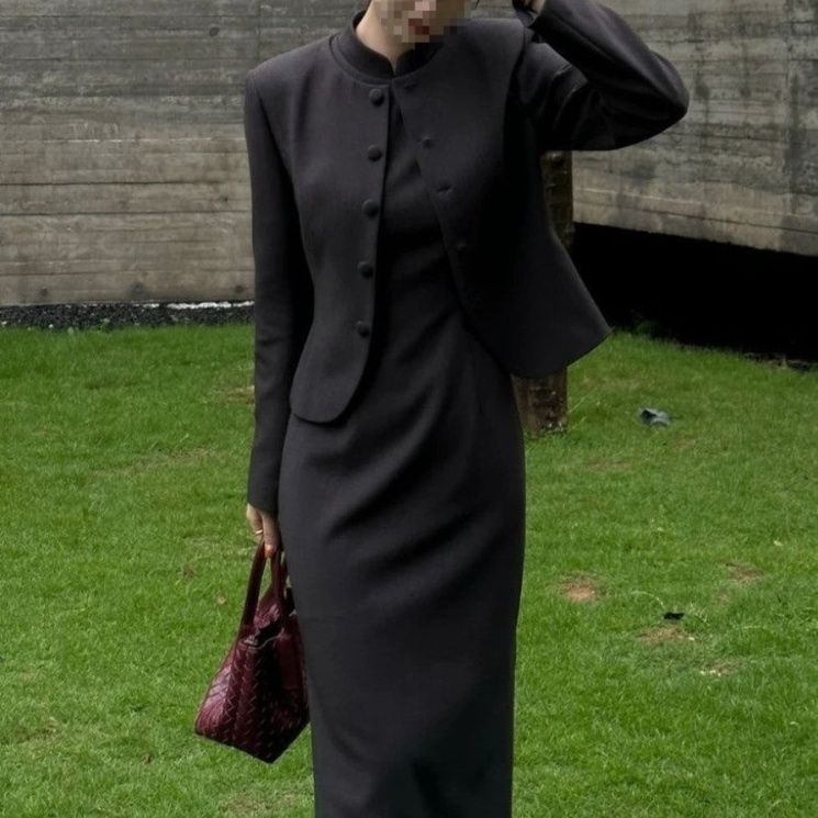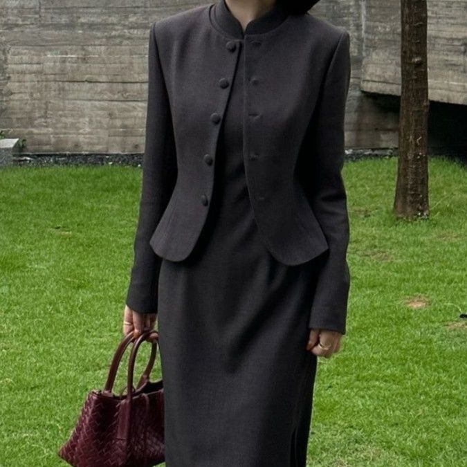 すっきりとしたタイトスカートとの組み合わせで、格式高い場にふさわしい装いが完成します。
