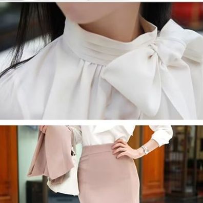 柔らかなシフォン素材を使用した上品な韓国風ブラウスです。
