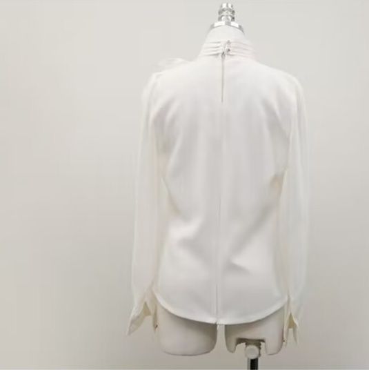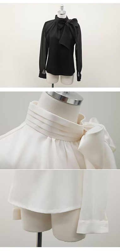 大きなリボンが印象的で、フォーマルスーツのインナーとしても活躍します。